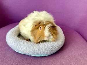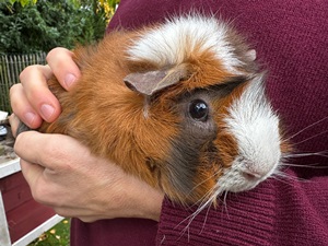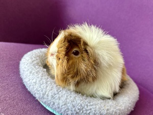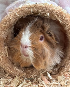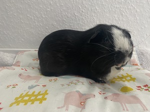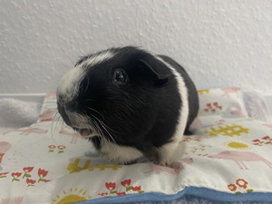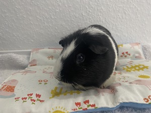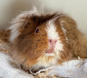 Iggy ist der Sohn von Notfall-Mama Silvie und wurde auf der Pflegestelle geboren. Leider ist seine Mama ein Satin-Meerschweinchen, sodass auch er ein engmaschiges OD-Monitoring braucht. Zum Glück wissen wir um seine Abstammung. Da er selbst nicht glänzt, könnte es in unwissenden bzw. unerfahrenen Händen fatale Folgen haben.
