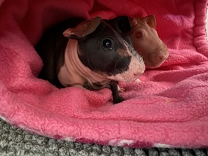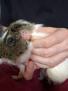 Shaun, am 23.5.2022, auf einer unserer Pflegestellen geboren kam nun wegen Haltungsaufgabe, zusammen mit seiner Freundin Brunhilde zu Cavia Care zurück.