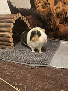 Aufgrund seiner Größe ist davon auszugehen, dass sich in seinem Stammbaum ein Cuy verbirgt, weshalb Wolfgang zu Beginn recht schreckhaft war. Nach aber beinahe zwei Monaten auf seiner Pflegestelle hat er sich durch viel Geduld als ein neugieriger und mittlerweile auch zutraulicher Schweinemann entpuppt, der seine Erbsenflocke aus der Hand nimmt und lautstark nach Futter ruft. Dennoch suchen wir ein neues Zuhause, das ihm eine ruhige Umgebung bietet. Nach so langer Zeit allein sollte er endlich in Gesellschaft anderer Schweinchen leben können.